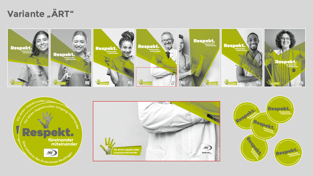 • Um Ihre Teilnahme an der Aktion nach Außen sichtbar machen zu können, haben Sie im Folgenden die Möglichkeit, Mitmach-Materialien zu bestellen. Dabei können Sie zwischen einer neutralen und einer ÄRT-Variante wählen.